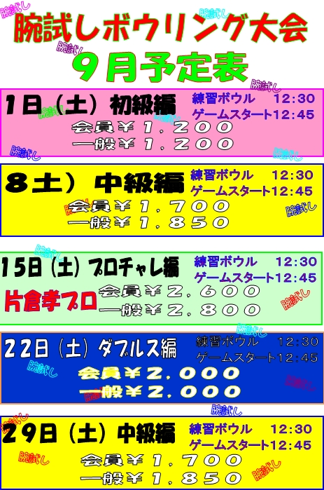 9月の腕試し大会予定
